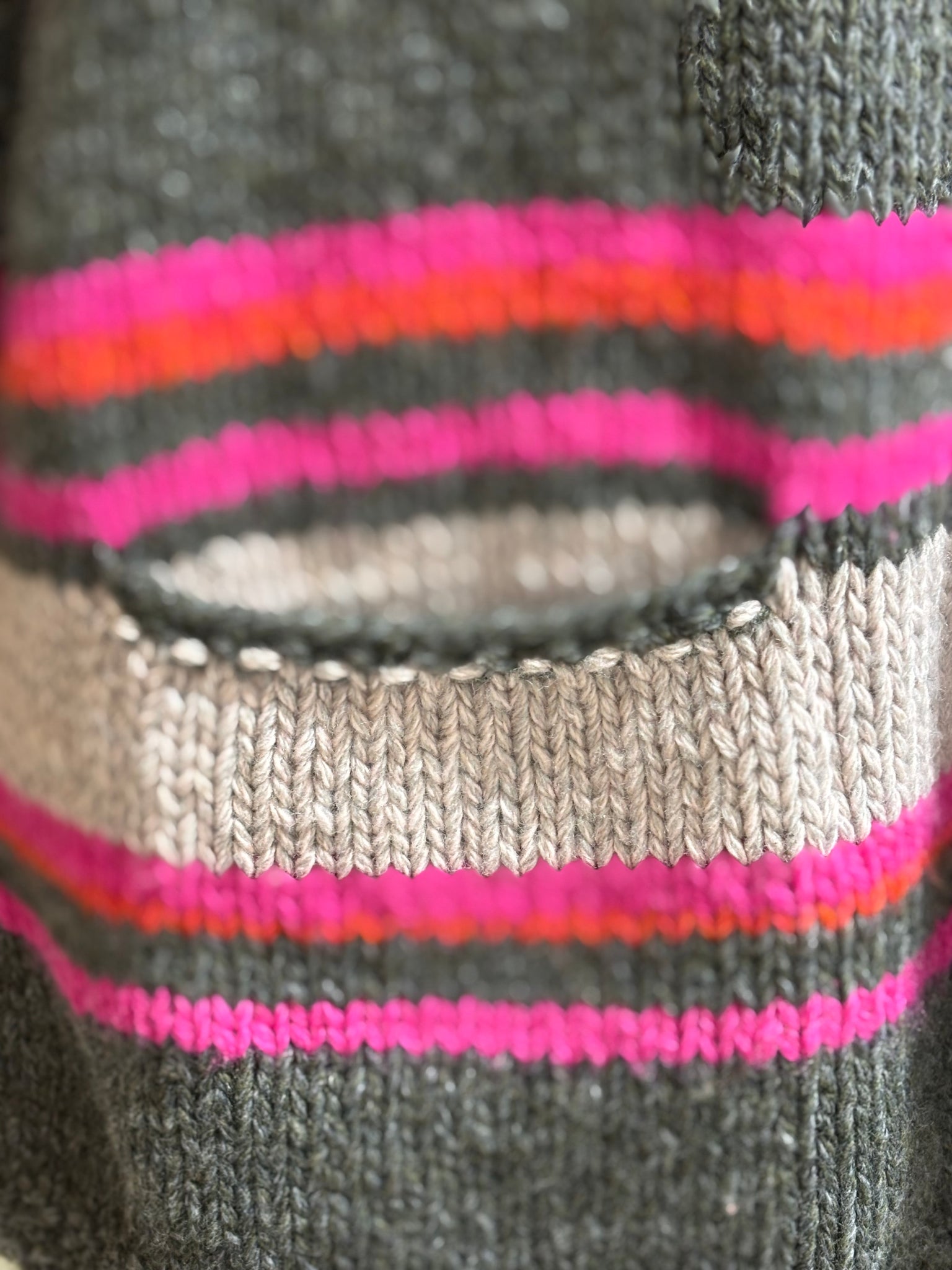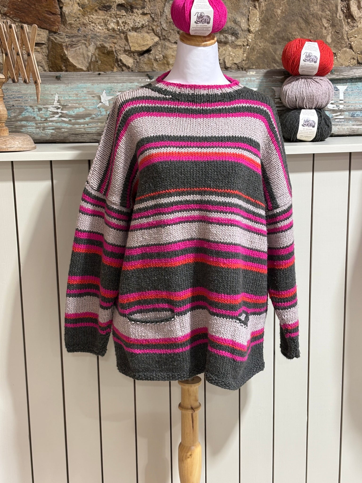 A fun super-slouchy, stripey, cosy tunic with pockets to wear anytime in or out.